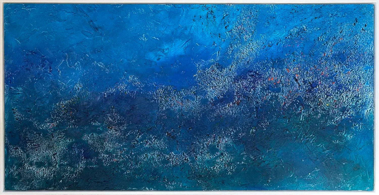 Soft shifts of blue and gentle textures create an underwater scene that hints at coral forms—calm, immersive, and quietly captivating.